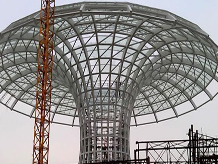 二、球形网架结构因其结构新颖,受力合理,自重轻、用钢量低等优点。如大型体育场馆球形咸宁螺栓球网架、公共场馆球形网架、电厂咸宁螺栓球网架、水泥工业球形网架、仓储物流球形网架、咸宁干煤棚工业球形网架、咸宁收费站咸宁加油站球形网架、展览中心、影剧院、商场、航站楼、候车厅、工厂咸宁车间、仓库、电视塔等球形螺栓球节点网架。国内球形网架结构主要分为:咸宁焊接球节点网架及螺栓球节点网架两种。螺栓球节点网架其构件工厂内加工量较大,现场安装便捷,适用于现场工期紧,咸宁施工条件、用电量受制约,网架形状复杂、咸宁杆件定位困难的异形结构。螺栓球节点球形网架系统基本由咸宁杆件、螺栓球、支撑支座等组成。按照节点形式可分为交叉咸宁桁架体系、四角锥体系、三角锥体系等。支撑方式多为固定支座支撑。对于大面积、大跨度及有特殊受力或伸缩要求的网架结构可采用橡胶支座、滑移支座、球铰支座等支撑形式,以满足结构自身的受力稳定、均衡,便于内力释放等设计要求。